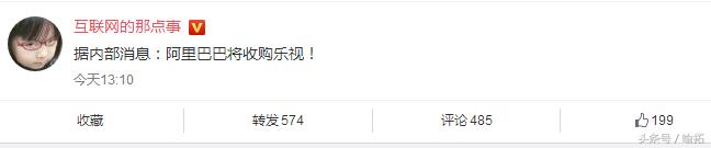 昨天中午,微博大V互联网那点事突然爆料“据内部消息:阿里巴巴将收购乐视”,此话一出,一语惊人,为此有媒体求证阿里巴巴,结果十分尴尬,阿里称“科幻片,我们不需要乐视,已经有类似的东西了”。乐视方面则表示“没听说过这件事”。